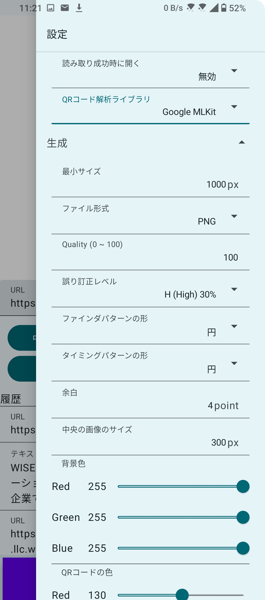 QRコード生成時の色、形の変更、画像挿入が可能です。(有料)